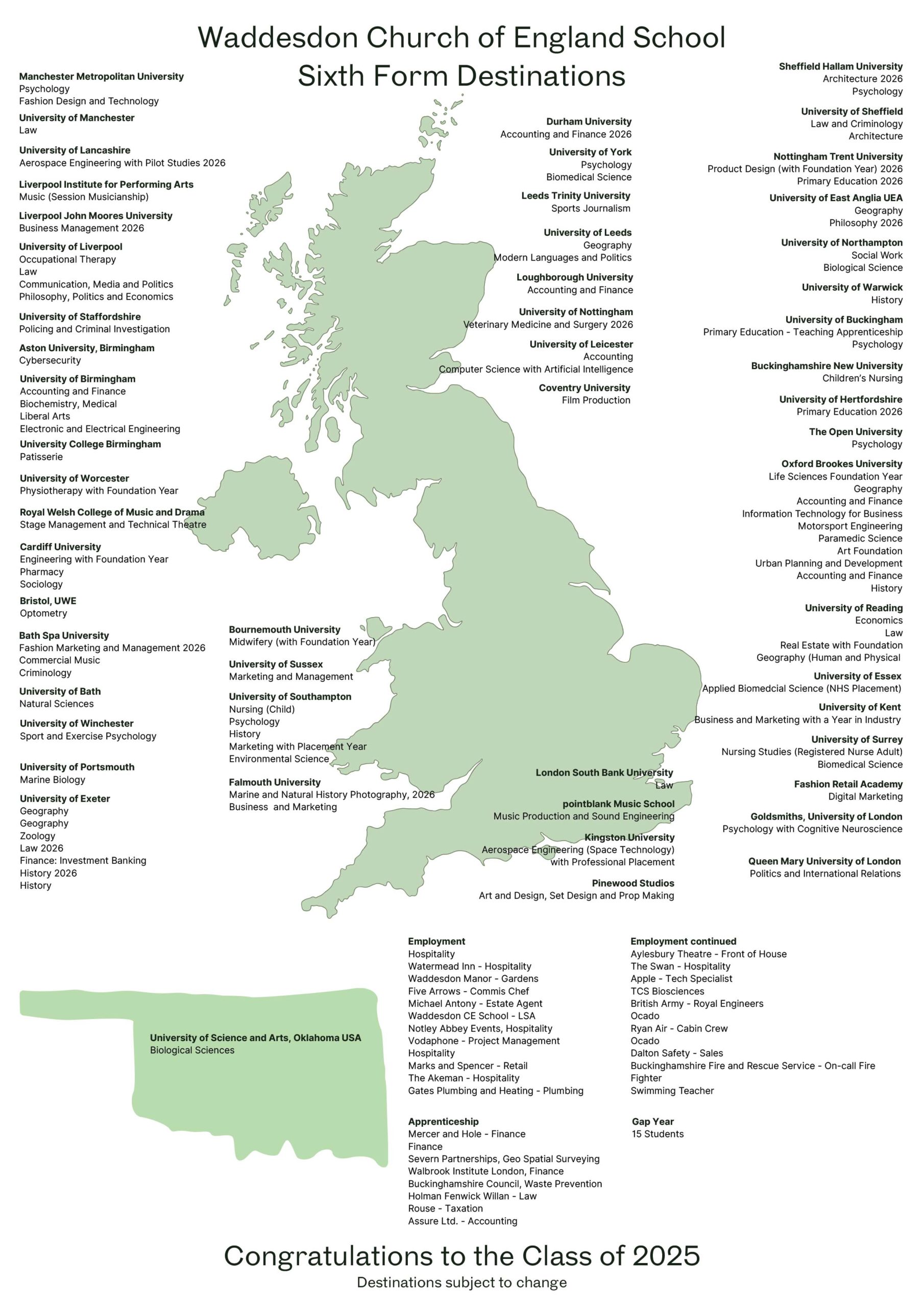 Students are leaving us to follow a range of destinations, including universities, apprenticeships and employment. We wish them all the very best for the future and are proud, not only of their results, but of the exceptional young adults that they have become.